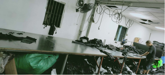 設備情況:美日繪嘜架機1臺,自動切布機,捷克牌電腦平車32臺,全自動電腦釘扣機1臺,普通釘扣機2臺,電腦鈕門機2臺,整燙全套設備